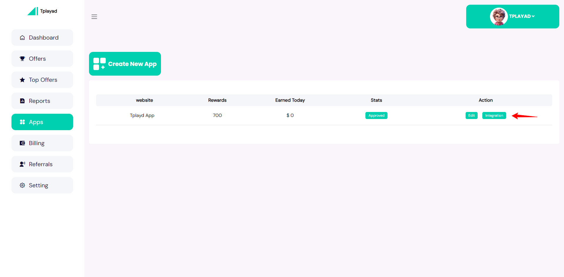 2 From your app list, you can get your API and secret keys, anyway if you click on Integartion you will be able to get your full integration code of the offerwall.