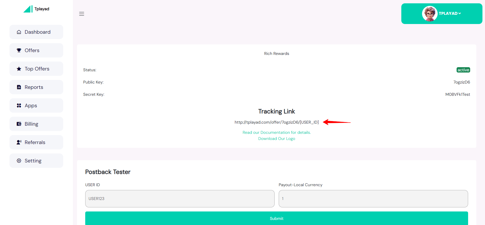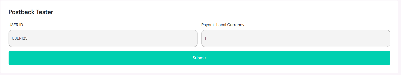 4 You can also test your postback integration; for more information, please refer to the section on postback notifications.