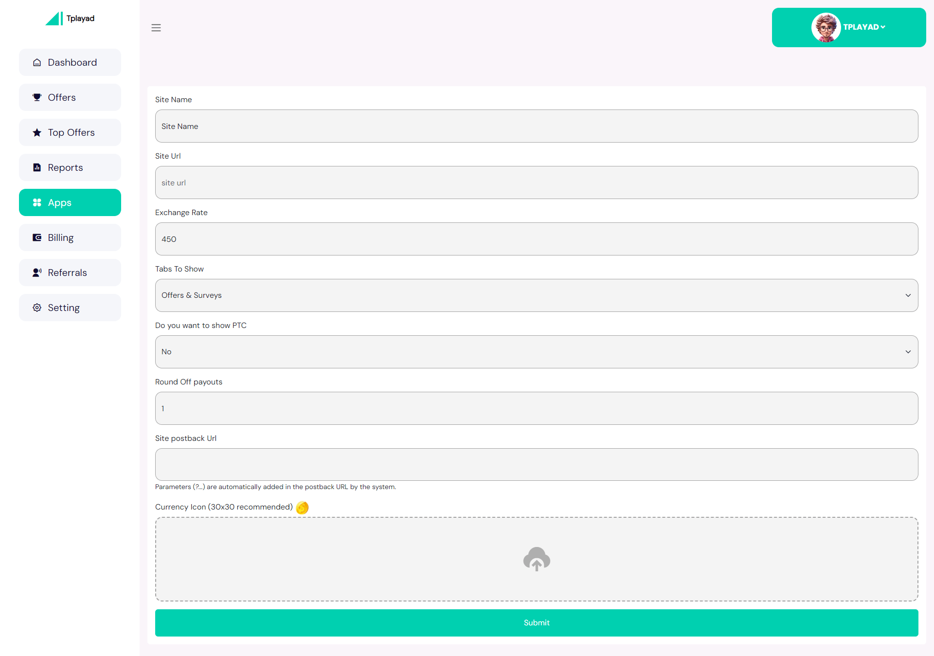 Specify your postback URL. Once a user completes an offer, we'll make a call to this URL, sending all necessary information to help you credit the virtual currency to your users. Refer to the postback section for more details.